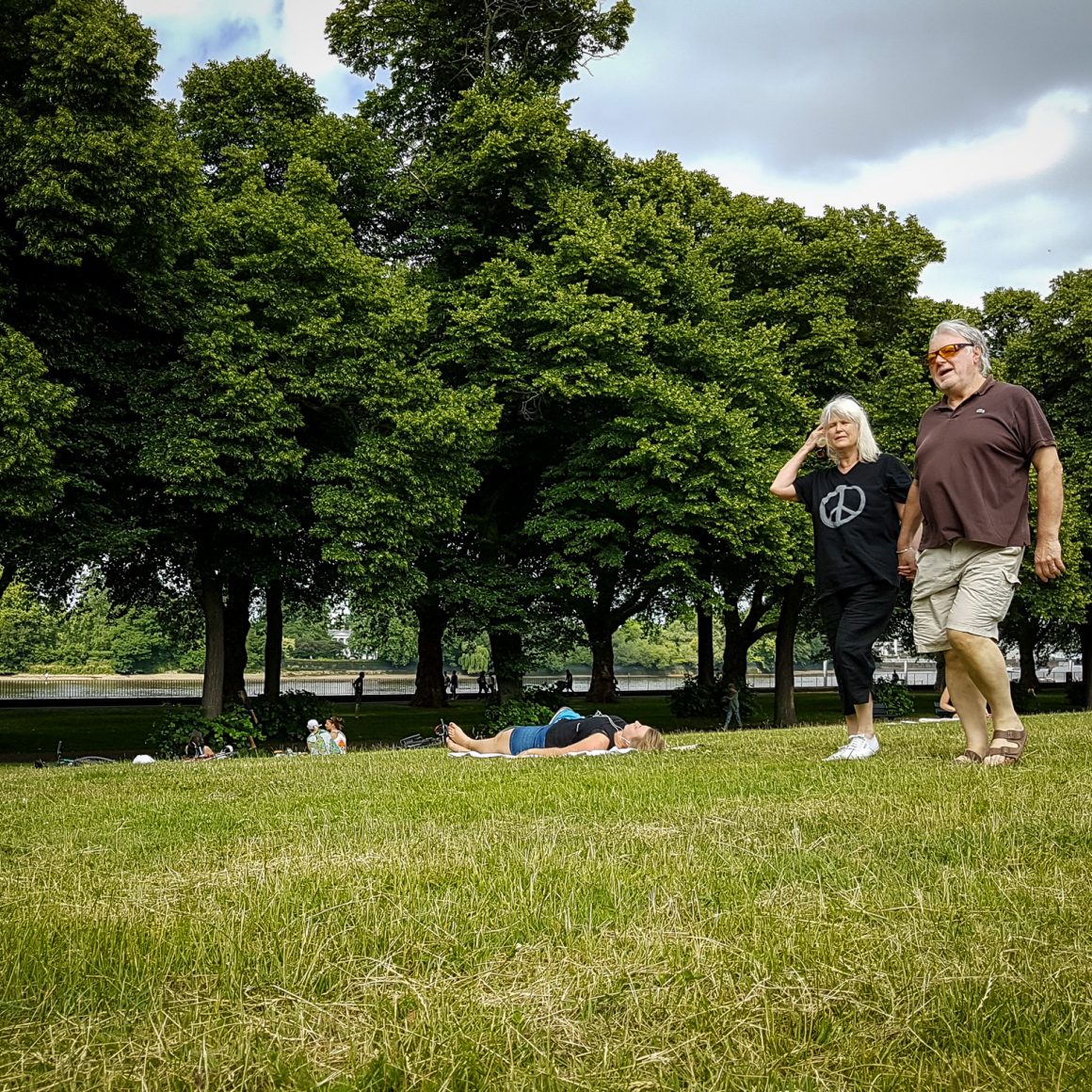 It was so nice outside, I still didn’t want to go home. So decided to cycle to the Wandsworth Park, a local park nearby. I was cycling around the park a few times before I settle on the grass. It was amazing to see some girls with swimming suits where there is no beach in the park. They walk around the park in that two-piece. 🙂